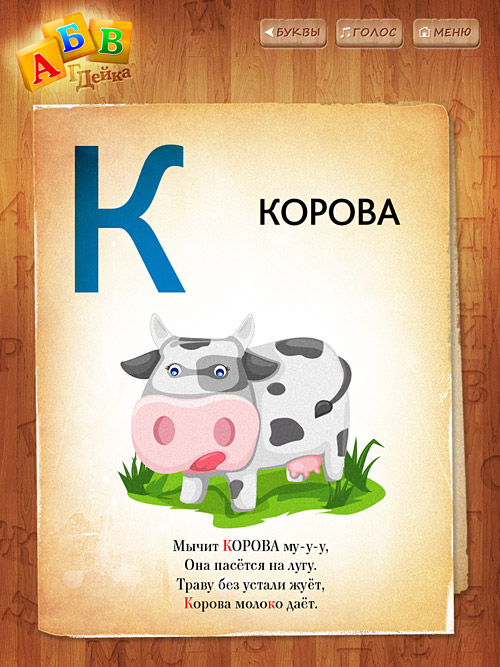 Это наше первое приложение для платформы iOS предназначается детям, которые еще не умеют читать. Несмотря на кажущуюся простоту идеи, процесс разработки поставил перед нами ряд сложных задач. Мы счастливы внести свой вклад в образование детей.